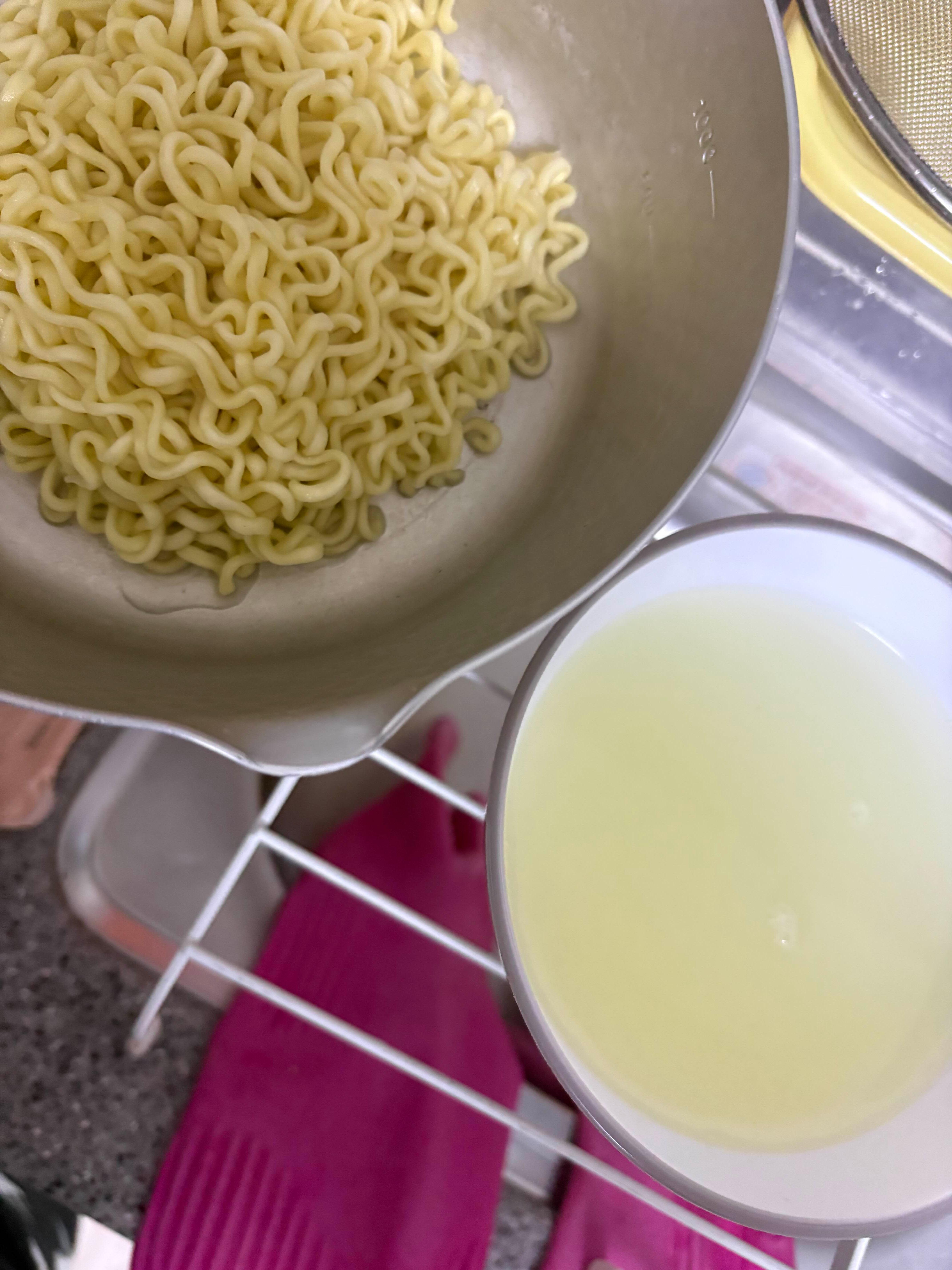 면 끓인 물은 다시 냄비나 그릇에 담아줍니다